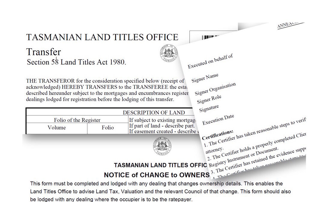 These changes have been made so that the paper conveyancing process now aligns with the electronic conveyancing process, i.e. in PEXA, the Signer digitally signs the dealings electronically on behalf of the party. This is now the same in the case of “wet ink” paper dealings that will continue to be used in Tasmania for the foreseeable future.